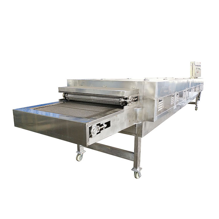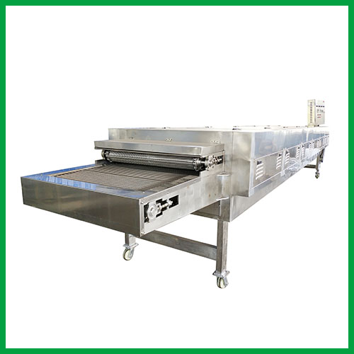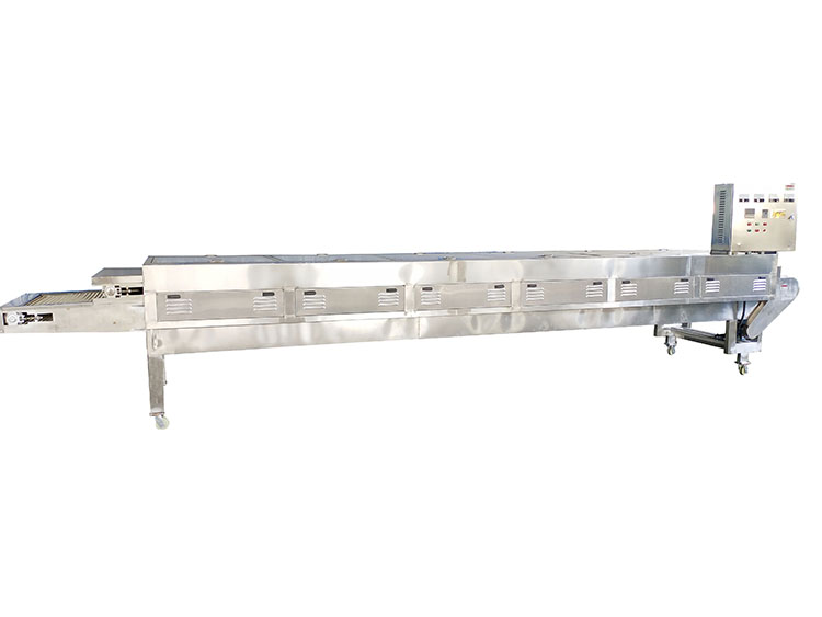 物料由傳動裝置拖動在烤箱內移動,烤箱內部熱量均勻分布,保持高品質烘焙效果,部分尾氣由專門排濕風機排出,廢氣由調節(jié)閥控制,網(wǎng)帶運行速度可根據(jù)需要的溫度自由調節(jié),烘烤好的成品自動落入收料器中,操作簡單,省時省力,安全節(jié)能噪音小。